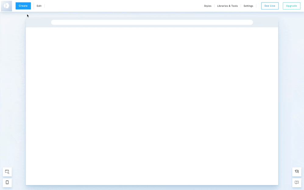 Our new admin panel has a sleek, modern design that prioritises user experience. It offers quick access to essential features such as Create, Edit, Styles, Libraries & Tools, Settings, and more. A real-time preview of your site is placed in the centre, with mobile and full-size preview options at the bottom.