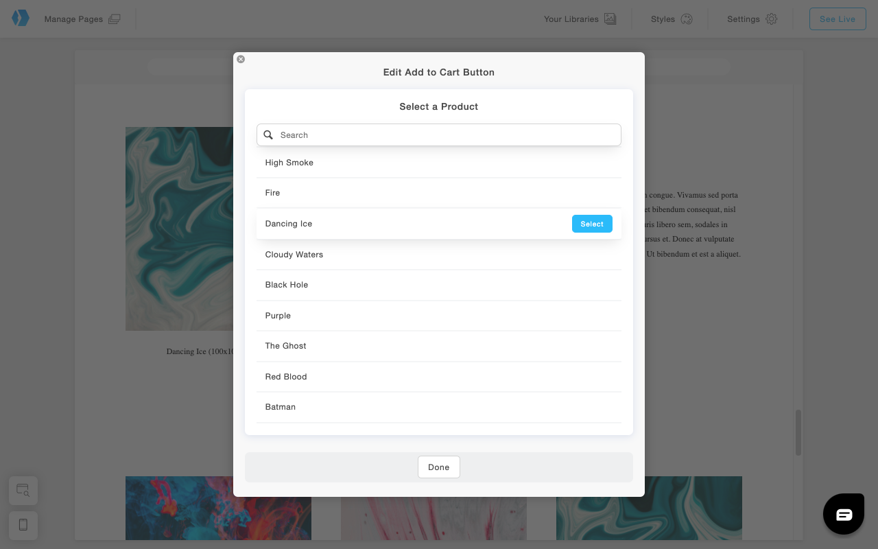 Now the button is added and should be visible on your page. To make this button work, you have to point it towards your product: