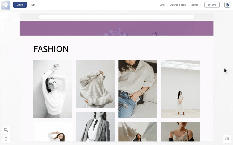 In Portfoliobox, some pages allow you to change their template after creation, giving you the flexibility to update your layout and refresh your portfolio website’s design at any time.