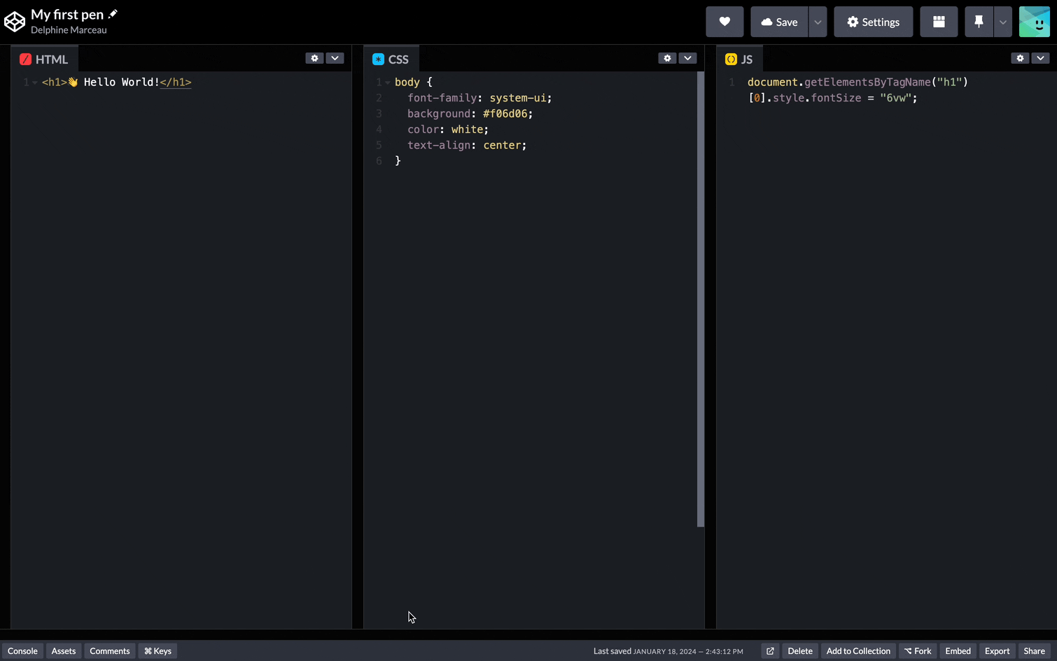 CodePen is an online platform where developers and designers can write and showcase HTML, CSS, and JavaScript code snippets, known as "pens". It offers real-time previews and collaboration and is popular for testing, sharing, and learning front-end web development.